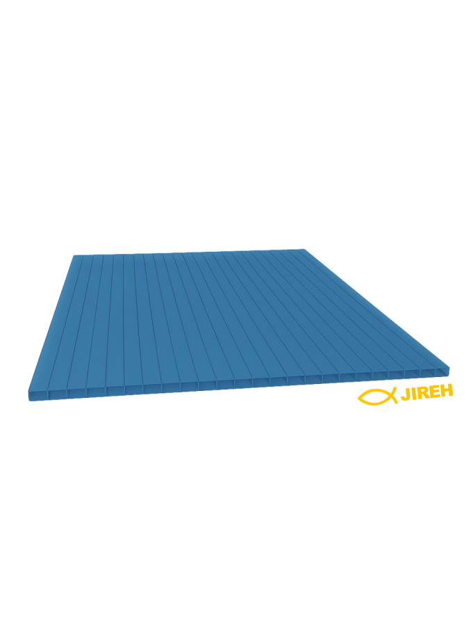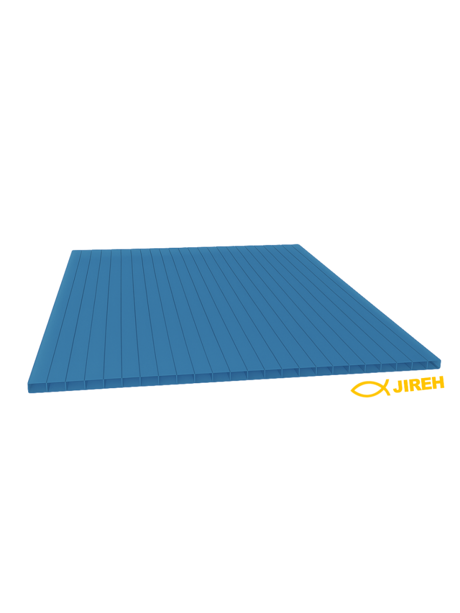Láminas de policarbonato transparente cumpliendo con todos los estándares de calidad AAA. Es un termo-plástico con propiedades muy interesantes en cuanto a resistencia al impacto, resistencia al calor y transparencia óptica. Vida Útil: Hasta 20 años de durabilidad. Medidas: Variedad de tamaños Jireh, desde 2.95 x 1.05mts. hasta 11.80 x 2.10mts Espesores: Disponibles en 6mm, 8mm y 10mm. Colores: Amplia gama Jireh, desde Cristal hasta Gris Humo y variedad de colores. Beneficios 1. Protección UV: Revestimiento de resina con protección UV en la superficie, lo que bloquea los rayos ultravioleta y no se amarillenta, extendiendo la vida útil del panel y mantiene una excelente transparencia durante muchos años. 2. Resistente al Fuego: Tienen una excelente resistencia a la llama hasta el grado B1, la temperatura es 630ºC. No contribuirá a la propagación del fuego cuando se quema, no genera humo y ni gases venenosos. 3. Transmisión de Luz: La transmisión de la luz de la hoja puede ser hasta del 80%. La hoja de policarbonato alveolar de color evita que la parte más fuerte de los rayos del sol atraviese, por lo que la transferencia de la luz es más suave. 4. Resistencia de Impacto: La hoja de policarbonato alveolar tiene una buena resistencia al impacto y rigidez condiciones de temperatura extremas después de mucho tiempo.