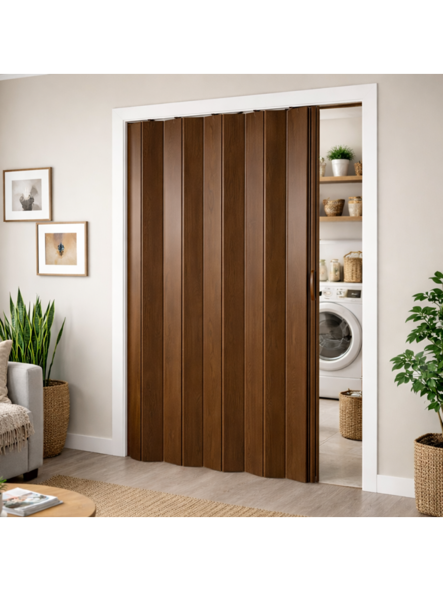 Puerta plegable PVC 91x200 cm, espesor 6mm, impermeable, uso interior, instalación sencilla con kit completo incluido. Ideal para ahorrar espacio y dividir ambientes.